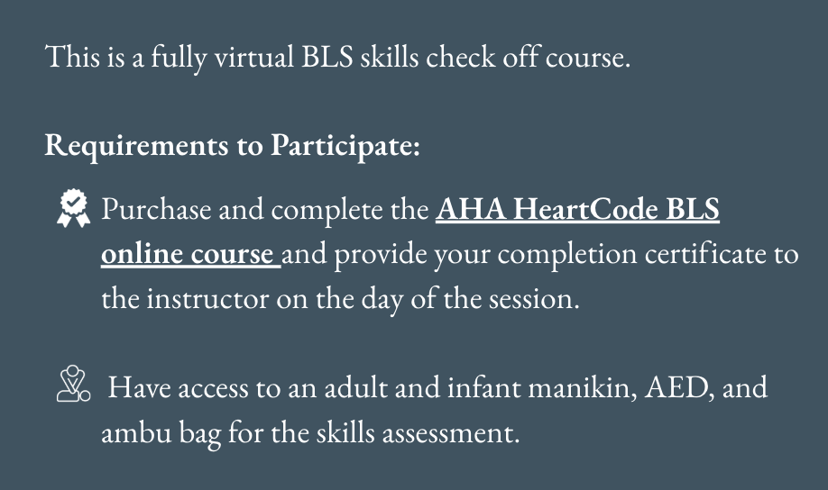 This fully onsite, abbreviated BLS renewal course is designed for healthcare professionals needing to refresh their skills and maintain certification.